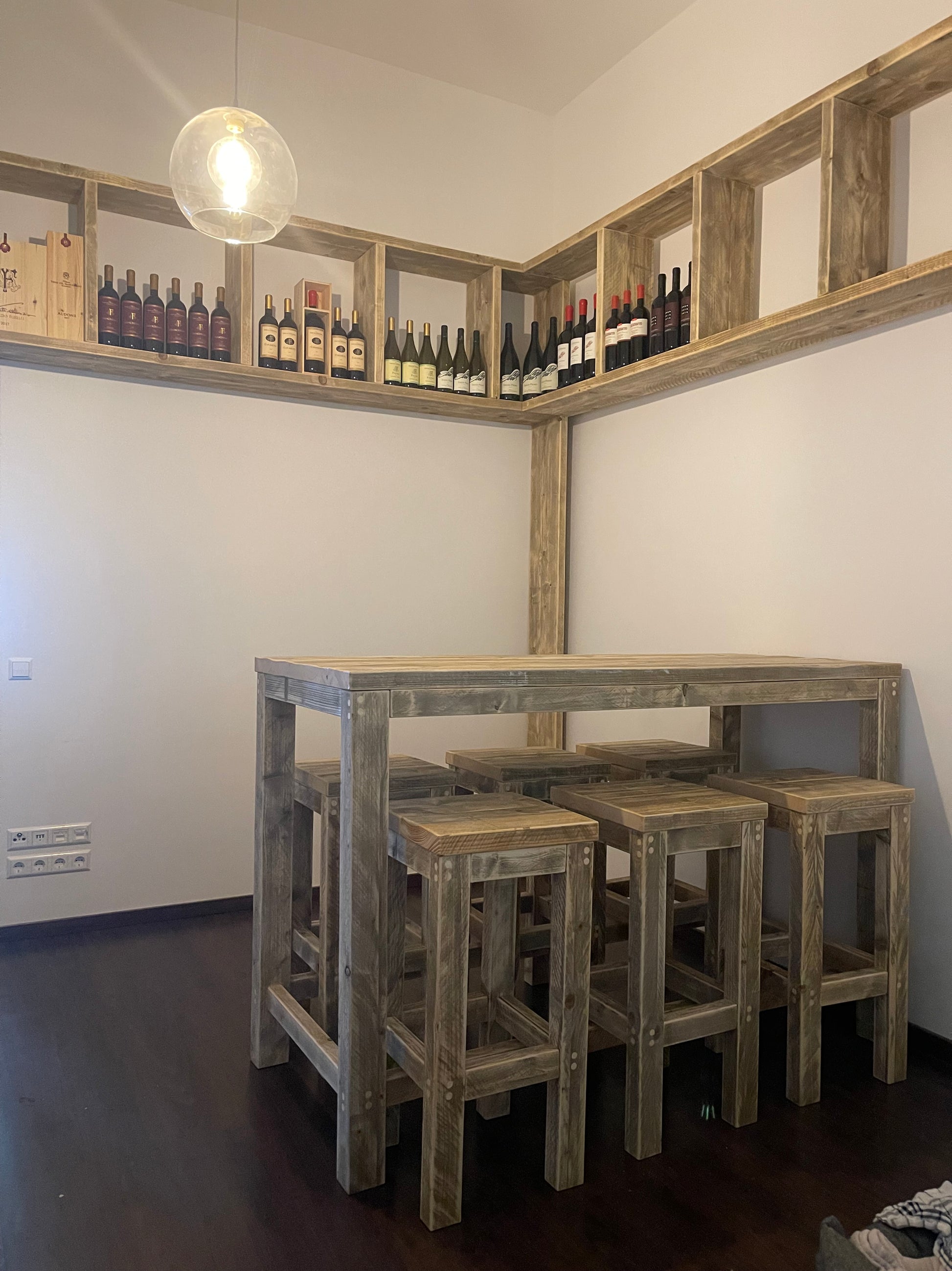 Dieser klassische Bauholz-Hochhocker kombiniert robustes Design mit zeitloser Eleganz. Mit wahlweise Holz- oder Metallstreben ist er der perfekte Partner für Bauholz-Hochtische und Theken. Seine klare Linienführung und hochwertige Verarbeitung machen ihn sowohl im privaten als auch im gewerblichen Bereich zu einem echten Blickfang.